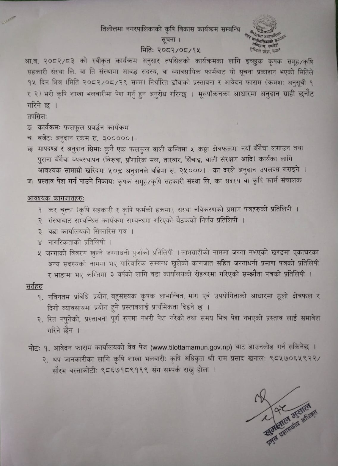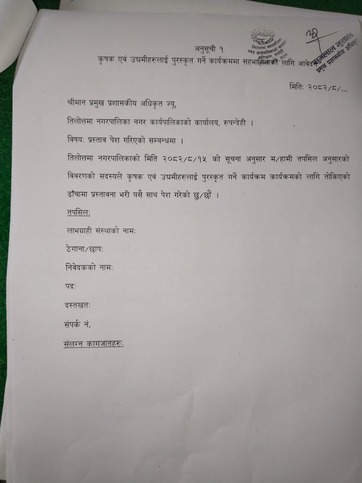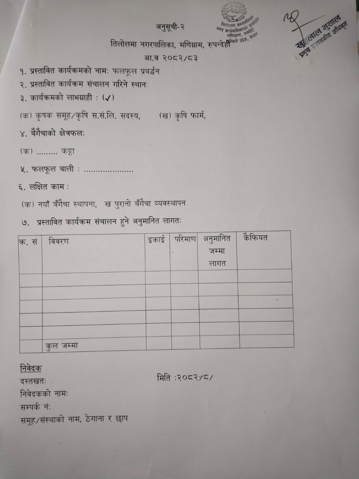 Home » कृषि अनुदान प्रस्ताव सम्बन्धमा।