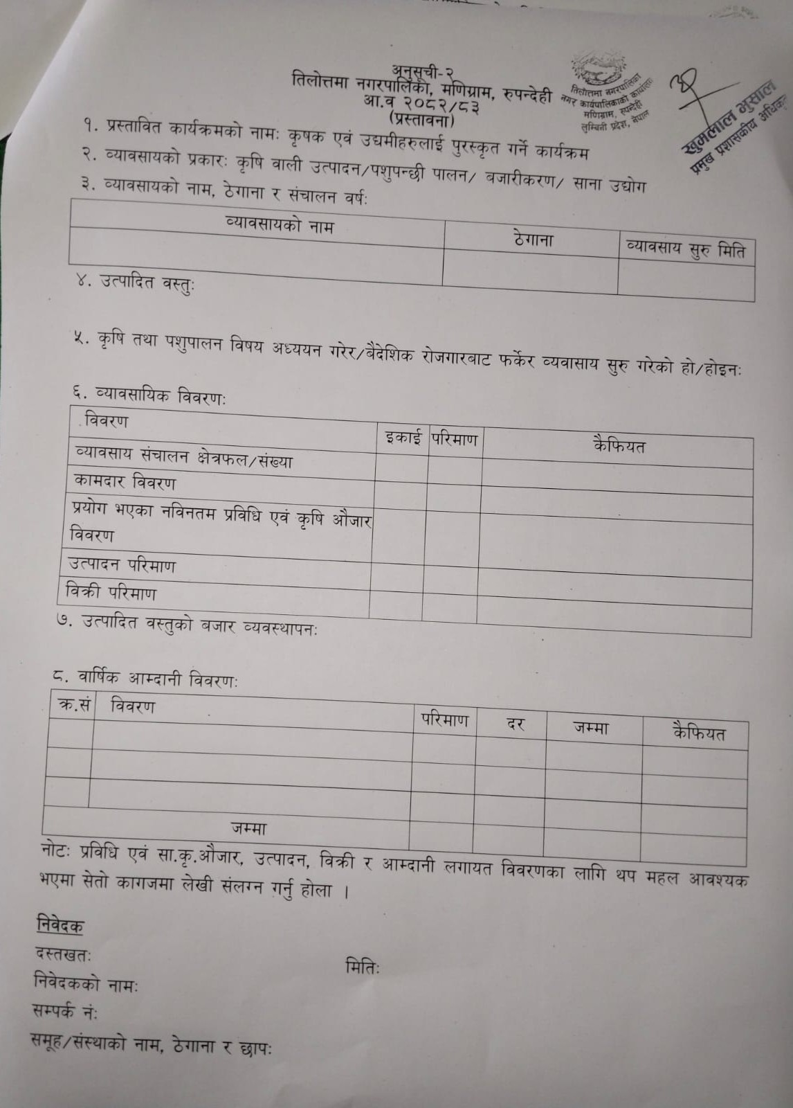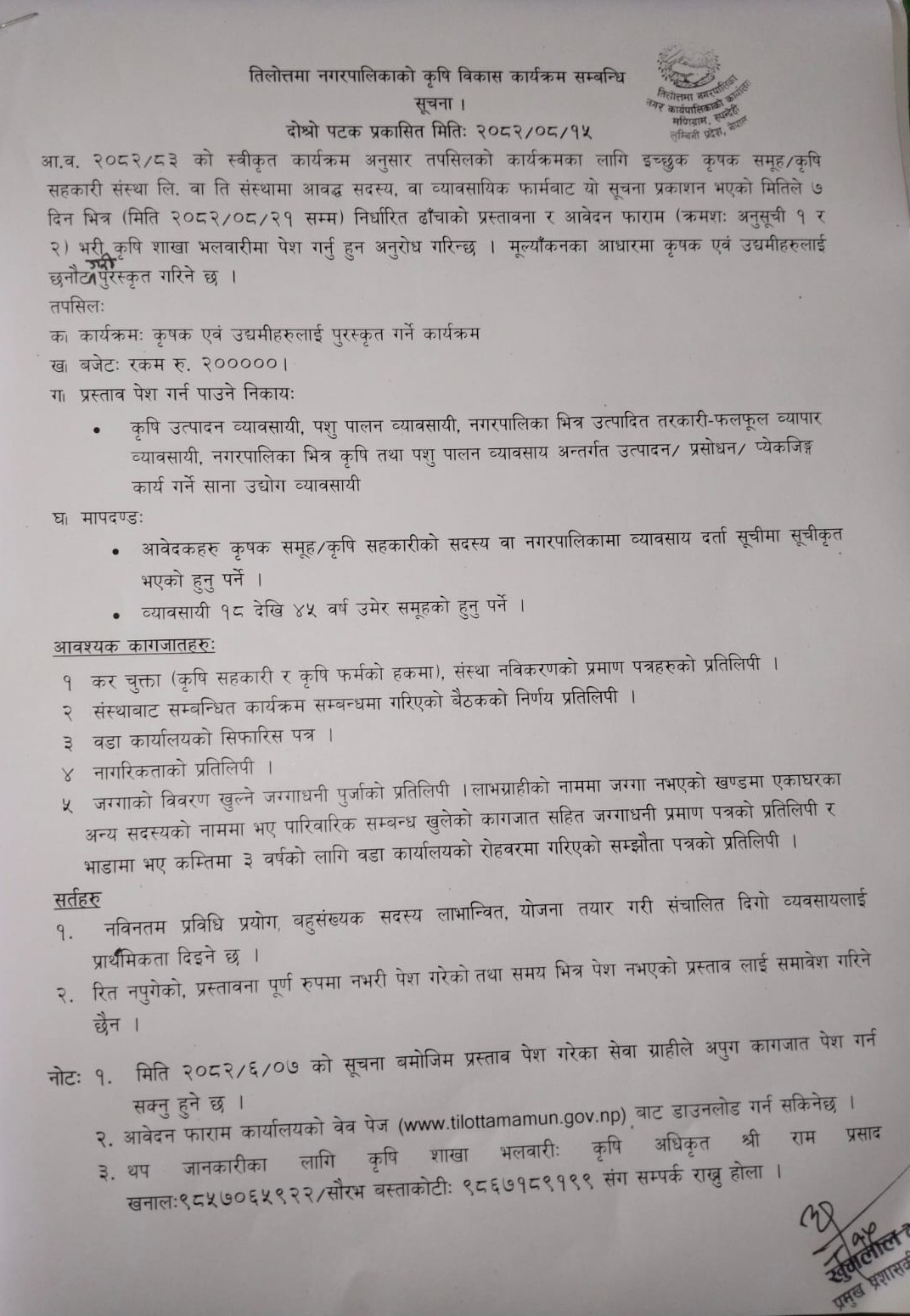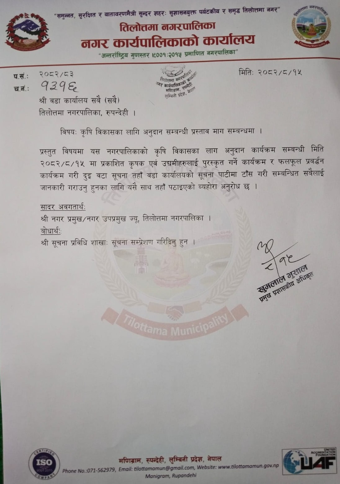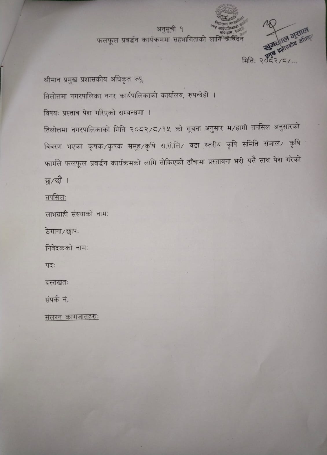 Home » कृषि अनुदान प्रस्ताव सम्बन्धमा।