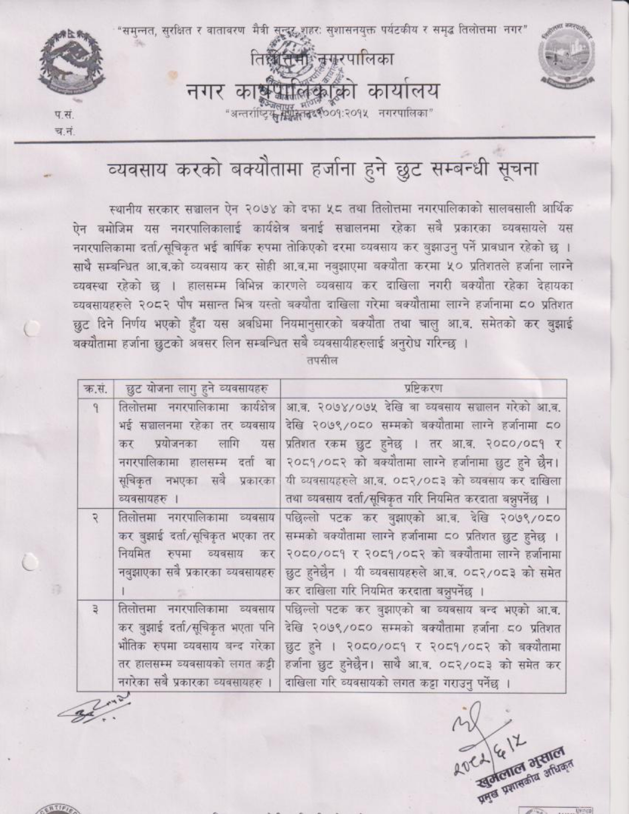 Home » व्यवसाय करको वक्यौतामा हर्जना छुटको सूचना !