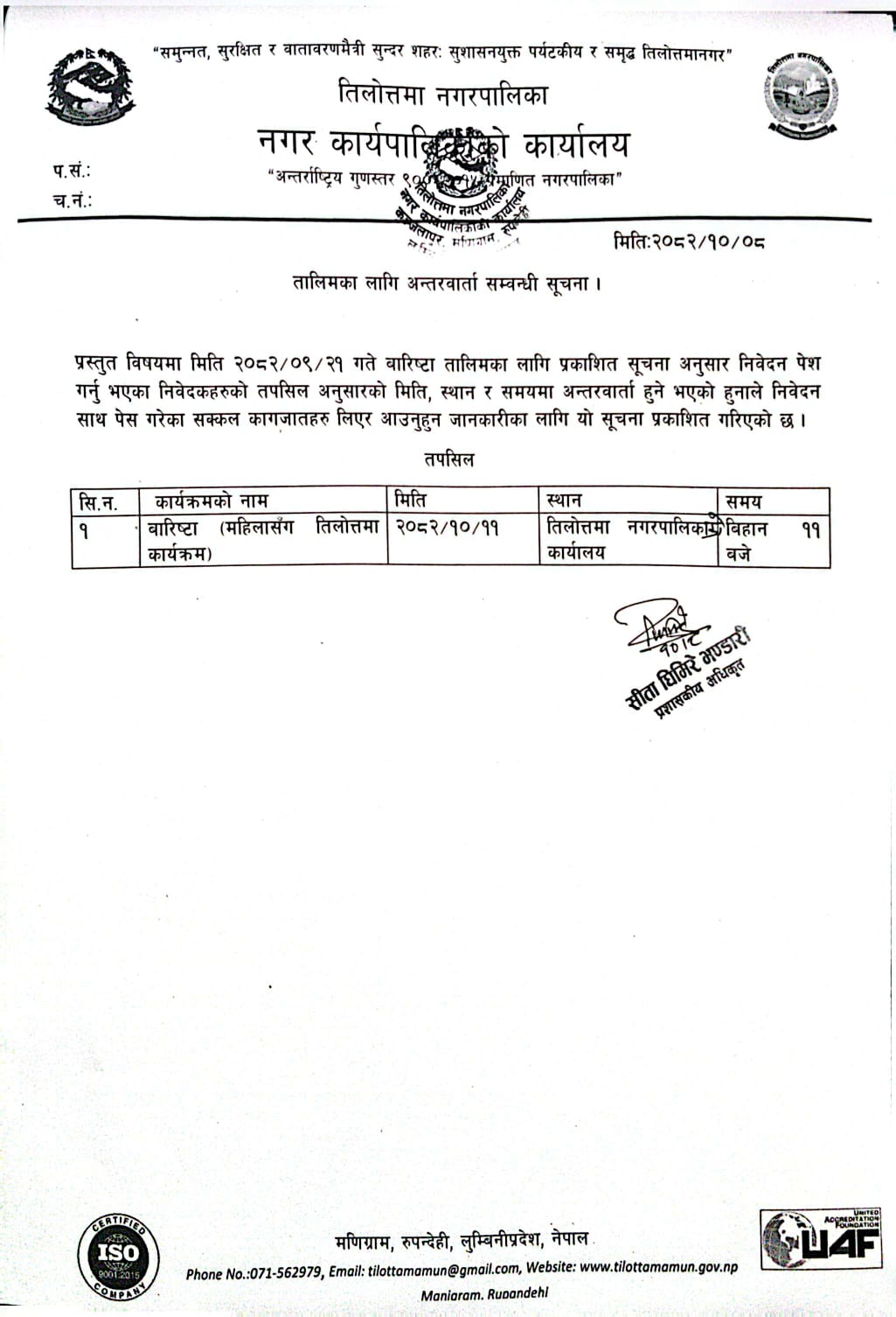 सिपमुलक तालिम सम्बन्धि अन्तर्वार्ता तथा आबेदन सम्बन्धमा !
