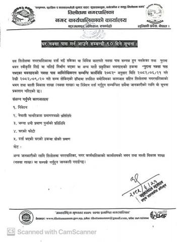 घर नक्सा पास गर्न आउने सम्बन्धि ९० दिने सुचना।