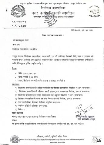 Home » नगरसभाको २० औँ अधिबेशन सम्बन्धमा।