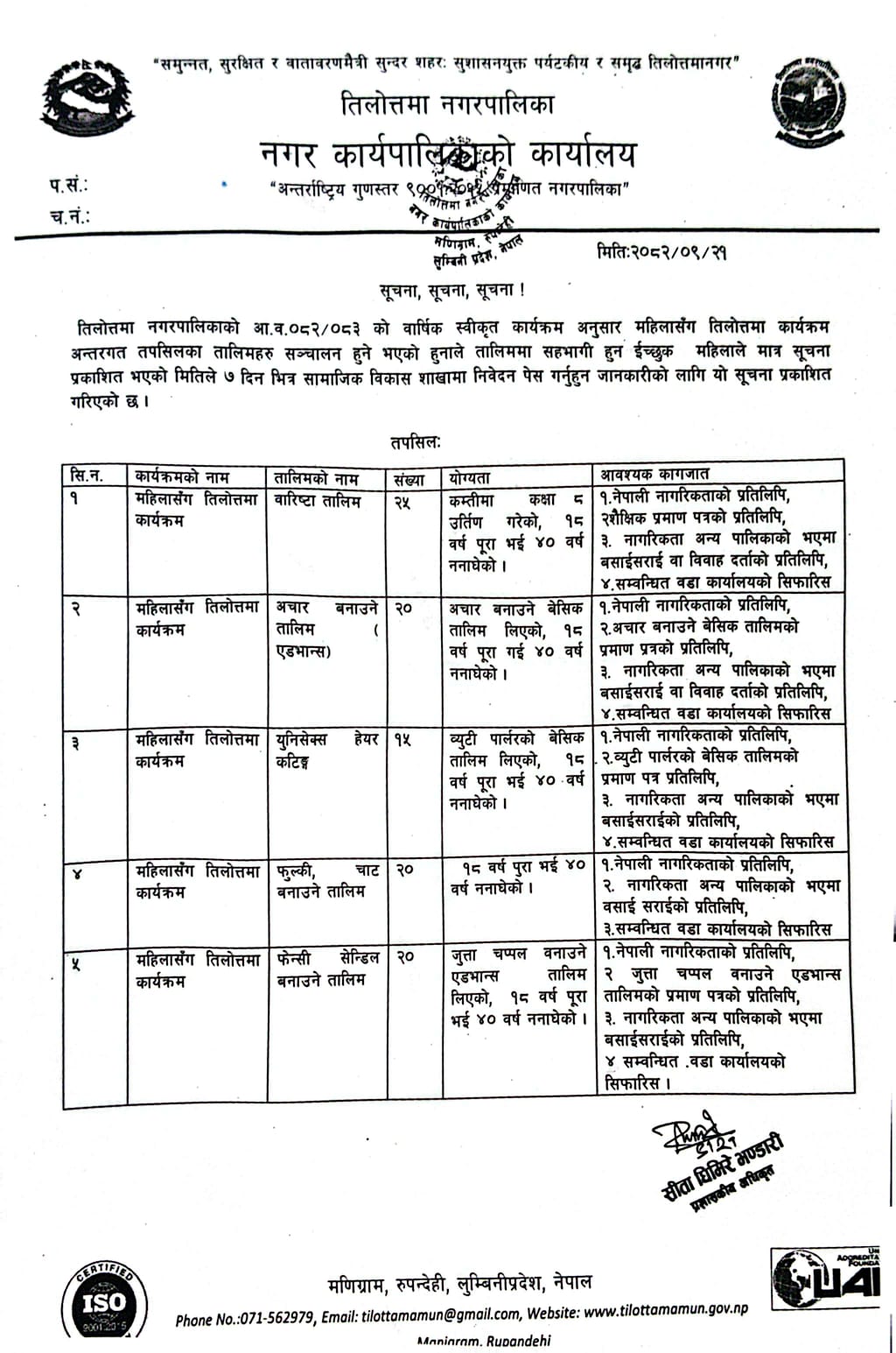 Home » महिलाहरुका लागि सिप बिकास तालिम सम्बन्धि सुचना।