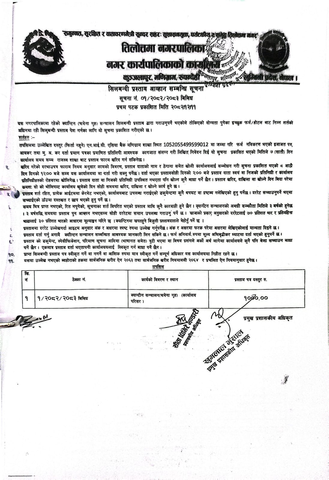 Home » सिलबन्दी प्रस्ताव आव्हान सम्बन्धि सूचना
