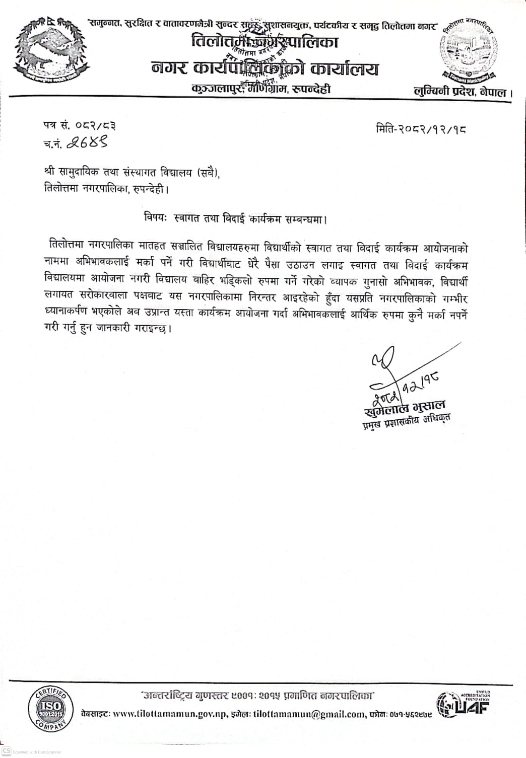 स्वागत तथा विदाई कार्यक्रम सम्बन्धमा ।