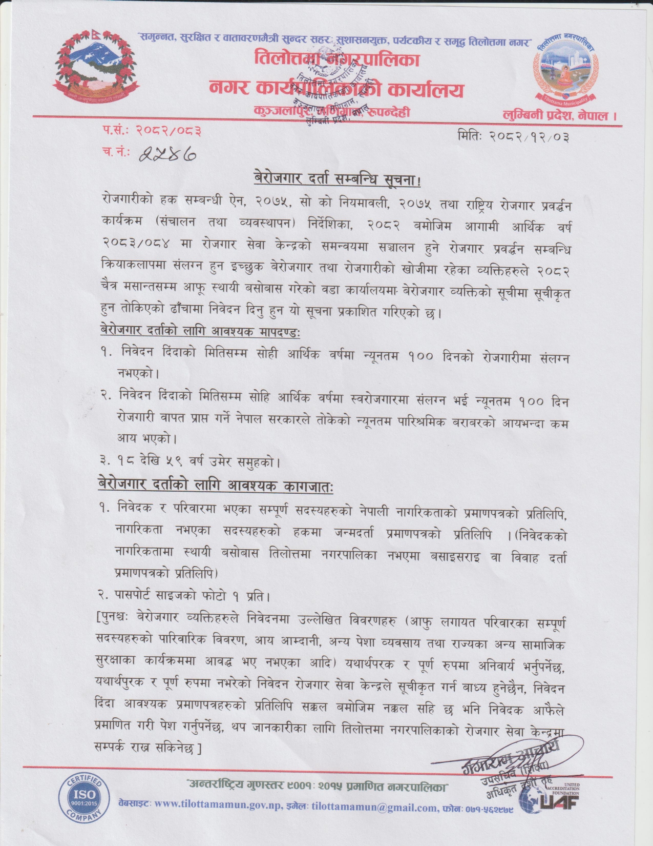 बेरोजगार व्यक्तिहरुलाई सुचित हुन अनुरोध।