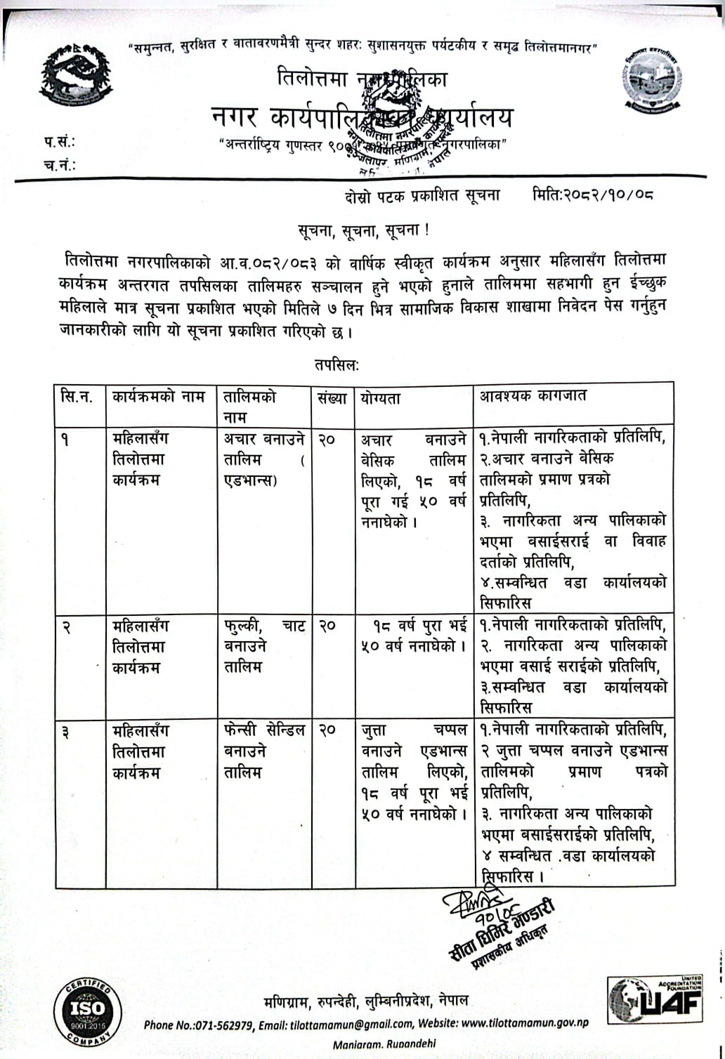 सिपमुलक तालिम सम्बन्धि अन्तर्वार्ता तथा आबेदन सम्बन्धमा !